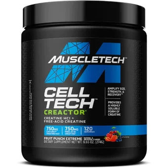 Creactor de Muscletech es una combinación de hidrocloruro de creatina (HCl) y una innovadora creatina en su forma libre que mejorará la capacidad de las células musculares para regenerar ATP (trifosfato de adenosina), la fuente principal de energía anaeróbica que nos permitirá recuperarnos más rápido entre series.