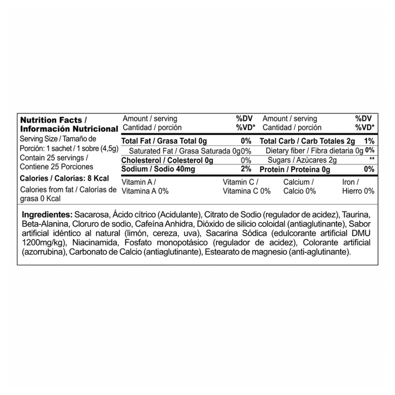 Energy X, es la fórmula en polvo perfecta que hidrata y brinda energía al mismo tiempo, esto gracias a su increíble combinación de Taurina, Cafeína, Niacina y Beta-Alanina debidamente balanceados, lo cual permite que en su actividad diaria usted este siempre activo, Energy X cuenta con un delicioso sabor a frutos rojos y cuenta con una presentación de 25 sobres por termo.