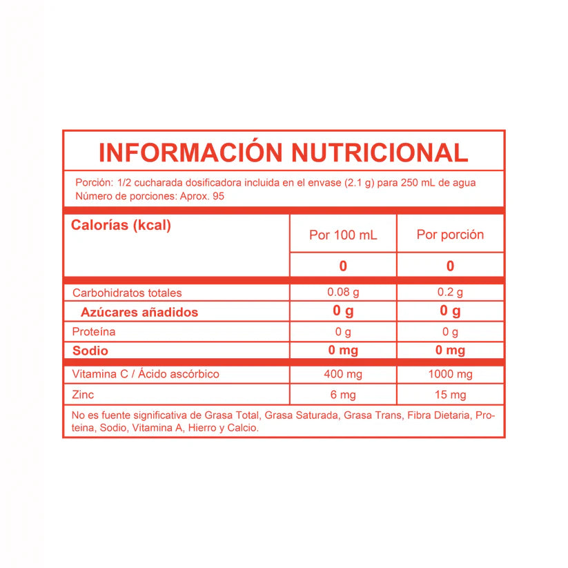 ESSENTIAL - VITA C, es un alimento que contiene Vitamina C y Sulfato de Zinc, entre otros ingredientes.