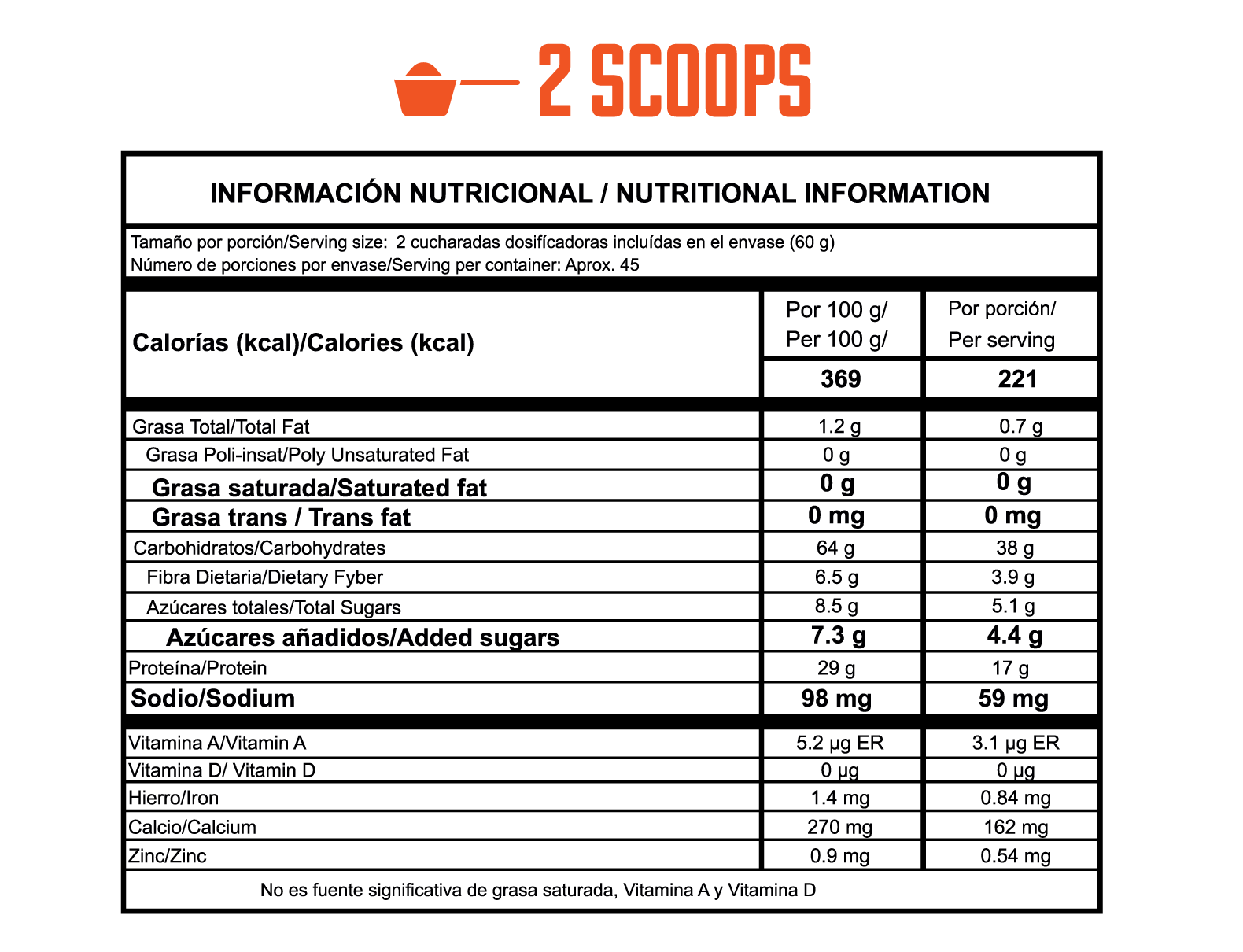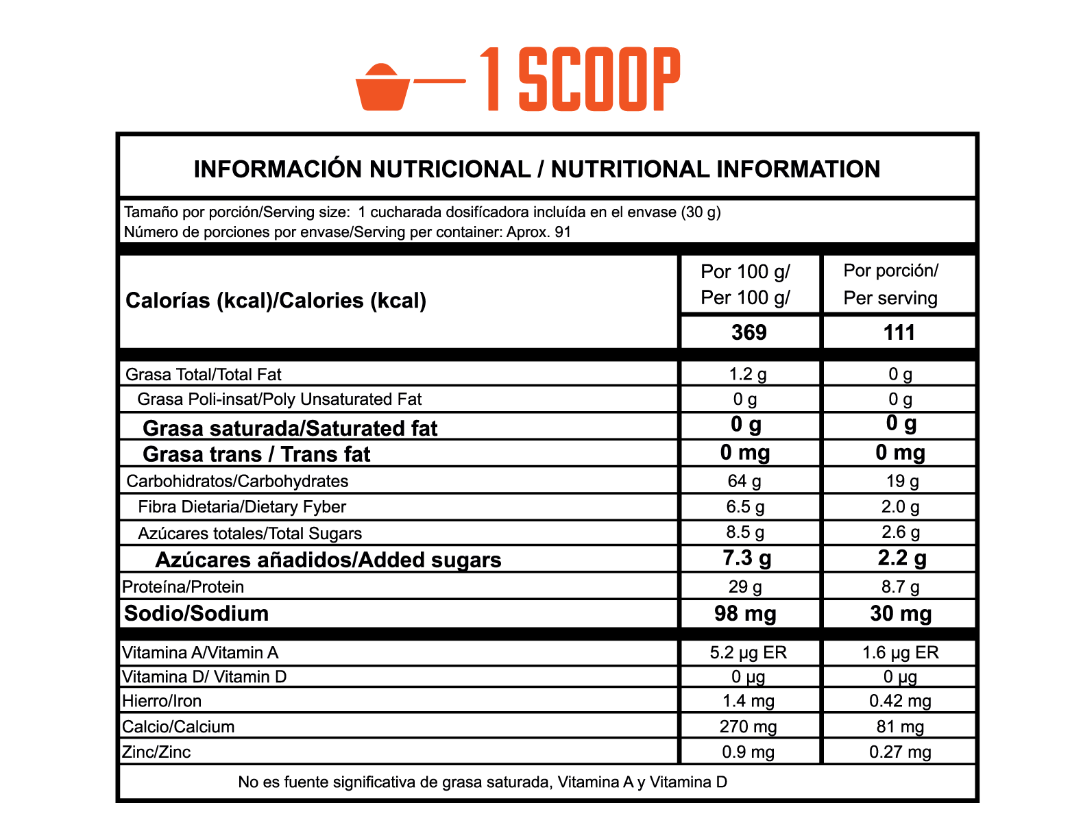 Tamaño de porción sugerida: 90 g (3 cucharadas de la cuchara medidora).