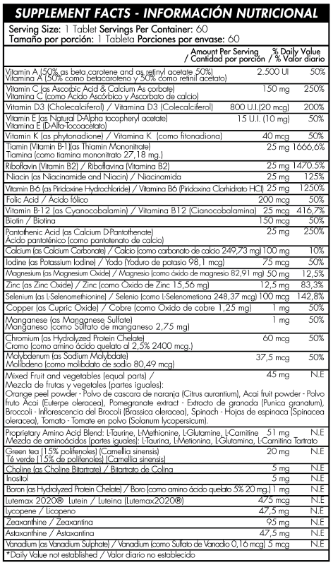 Adultos Solamente. Tomar una (1) Tableta diariamente con alimentos. No tome este suplemento dentro de la hora siguiente al consumo de medicamentos. No exceder la porción recomendada.