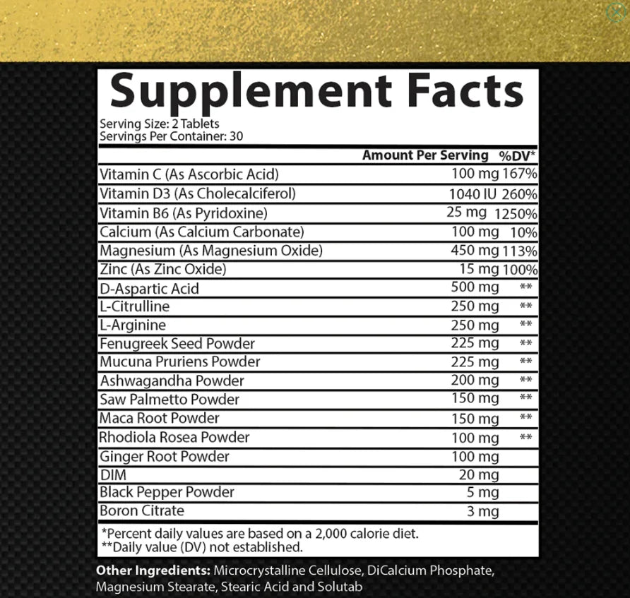 Monster Test Gold es un suplemento multivitamínico diseñado para hombres que buscan mejorar su rendimiento físico y mental. Contiene una mezcla única de ingredientes clave, incluyendo vitaminas, minerales, hierbas y otros nutrientes, formulados para apoyar la salud general y el bienestar masculino.