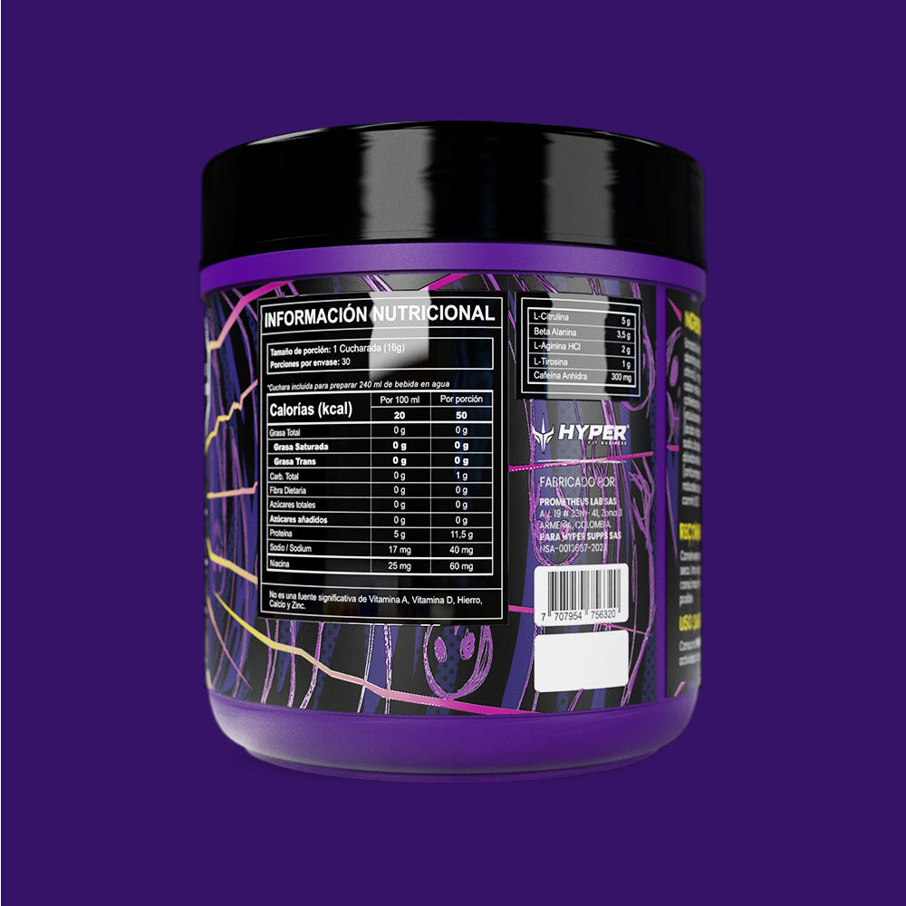 En lugar de eso, nos concentramos en lo que realmente importa: 5g de Citrulina, 2g de Arginina HCl, 3,5g de Beta-Alanina, 1g de L-Tirosina y 300mg de Cafeína Anhidra. Esta mezcla de 16g por servicio es pura potencia, diseñada para maximizar tu rendimiento sin carbohidratos.