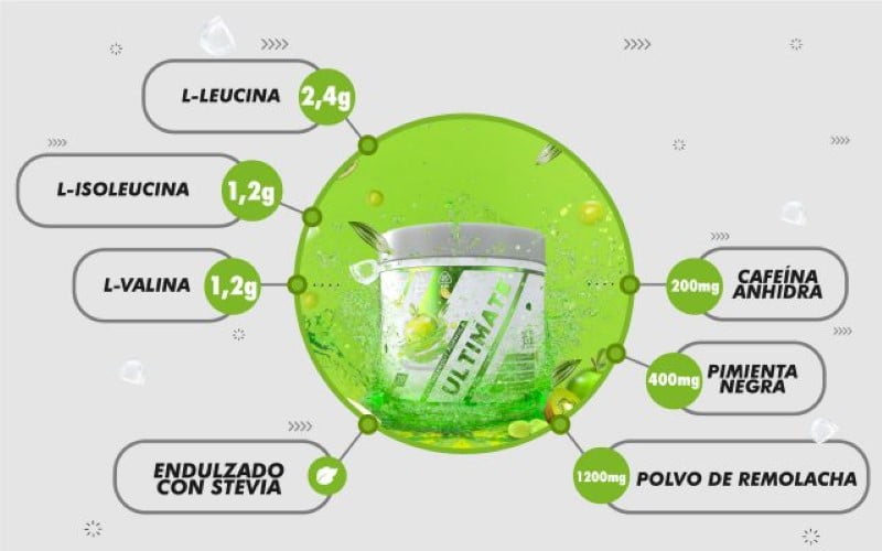 – Para finalizar adicionamos aminoácidos (BCAA), los cuales reducirán la sensación de fatiga y permitirán entrenos más extensos.