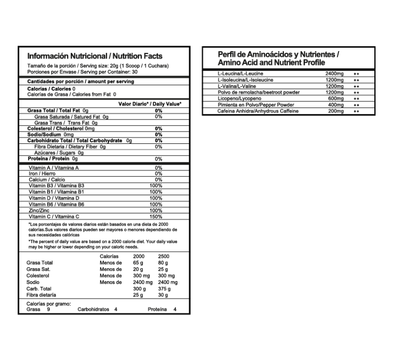 – Sumados a está potente fórmula la raíz de remolacha y la pimienta negra sirven cómo precursores de óxido nítrico y potencian la asimilación de nutrientes generando mayor vasodilatación y bombeo.