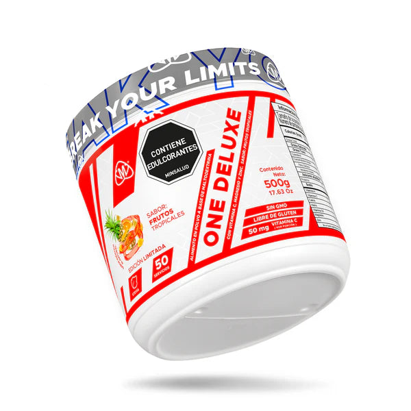 One Deluxe es un alimento en polvo a base de maltodextrina, con vitamina c, magnesio y zinc, sabor a naranja y frutos tropicales. SIN CONSERVANTES