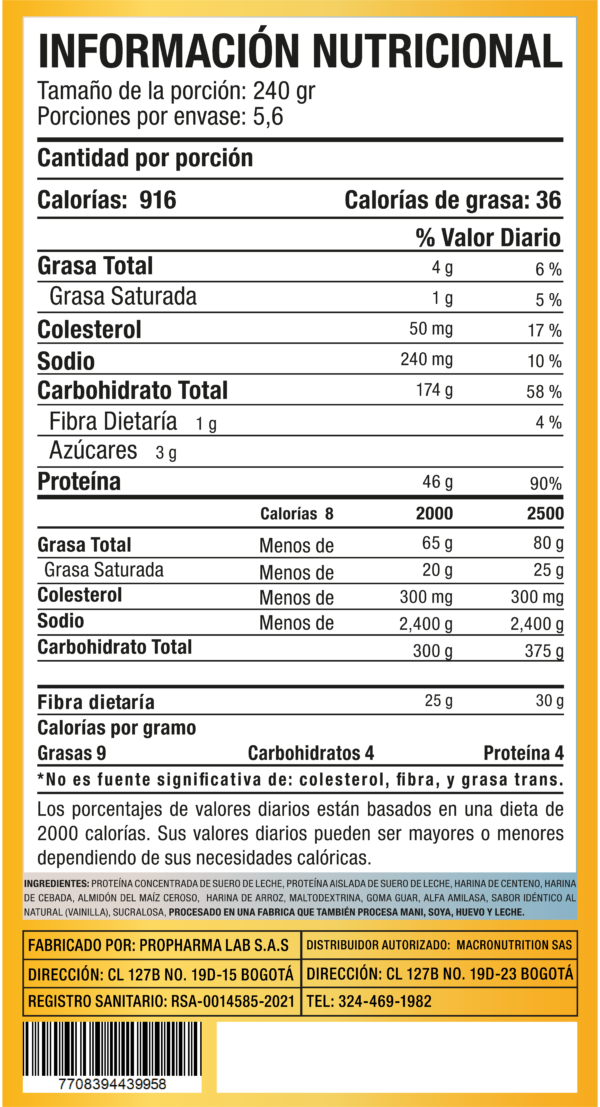 Cada porción de XL GAINER aporta 46 gr de proteína de alta calidad, y un alto contenido de carbohidratos complejos de bajo y alto índice glucémico, complemento ideal para alcanzar los requerimientos de proteína y carbohidratos de un deportista.